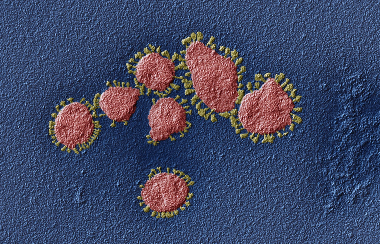 Delta and other variants of SARS-CoV-2 (viral particles, artificially coloured) have spread across the globe in part by hitching rides on aeroplanes. Credit: Eye Of Science/SPL
