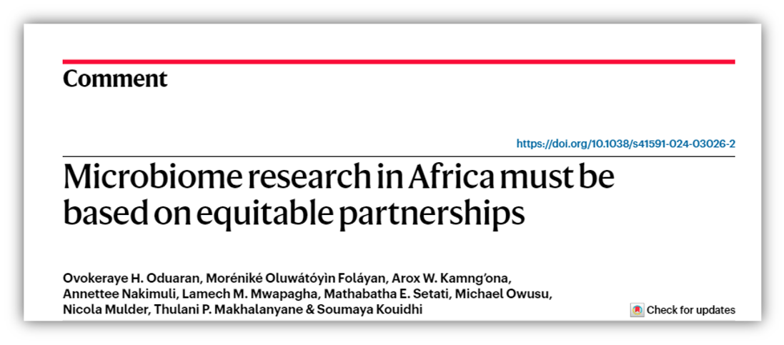 Out now, in Nature Medicine, we continue our efforts to promote and highlight research on African Microbiomes. Current studies on African microbiomes are typically led by scientists from the global north. While this has helped to reveal fundamental insights, African scientists often play tangential roles and the research is led by researchers in the global north. This needs to change.