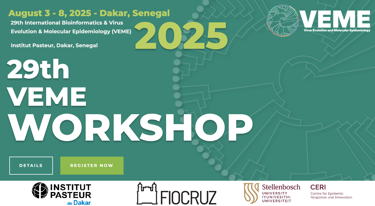 The 29th International Workshop on Virus Evolution and Molecular Epidemiology (VEME2025) is now accepting applications! This prestigious 6-day intensive workshop will be hosted by the Institut Pasteur de Dakar in Dakar, Senegal, from 3-8 August 2025.