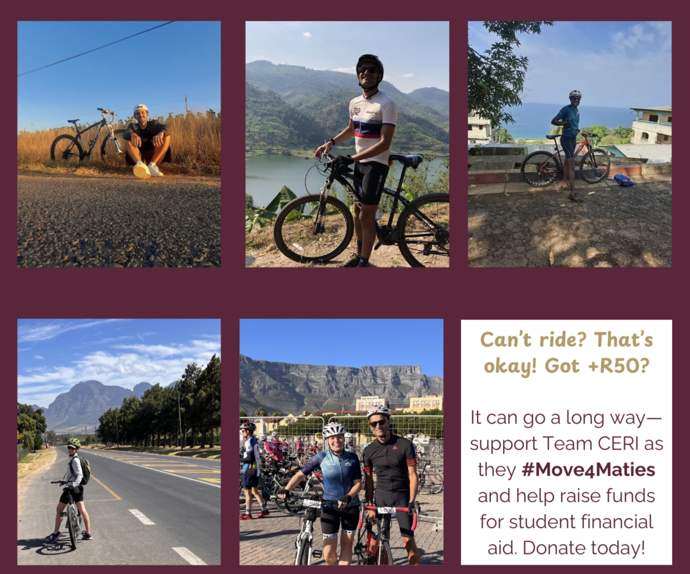 This year, the Centre for Epidemic Response and Innovation (CERI) team is proud to participate in the 47th edition of the iconic Cape Town Cycle Tour as part of the #Move4Maties fundraising campaign. This race is more than just a physical challenge; its a movement to create opportunities for students who need them most.