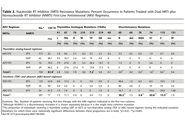3 -Barber TJ, Harrison L, Asboe D, Williams I, Kirk S, et al. (2012) Frequency and patterns of protease gene resistance mutations in HIV-infected patients treated with lopinavir/ritonavir as their first protease inhibitor. J Antimicrob Che- mother 67: 995?1000.